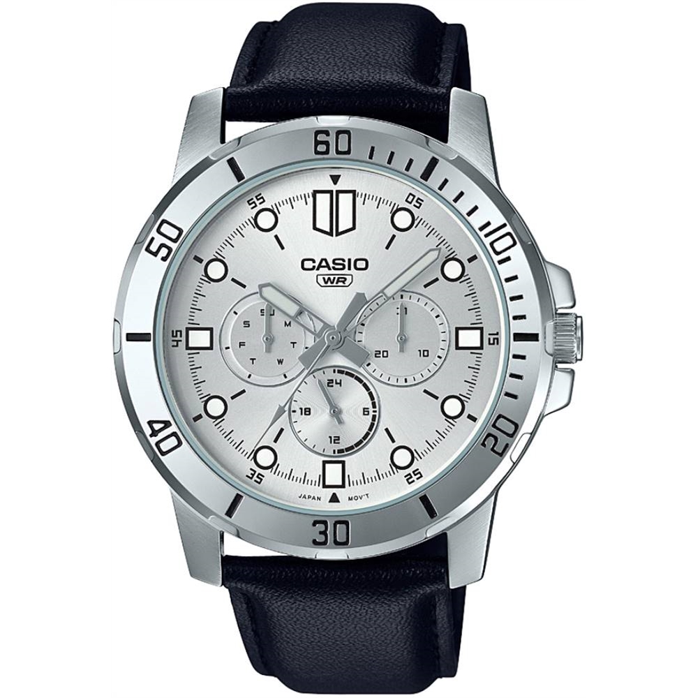 Casio MTP-VD300L-7E Multi Hands Black Leather White Analog Men’s Dress Watch